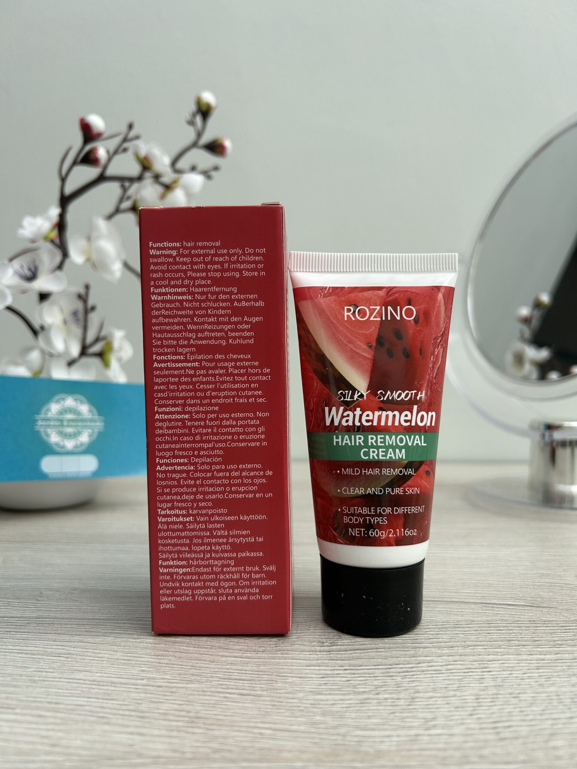 Crema depilatoria Silky Smooth Watermelon, formulada para una remoción suave del vello mientras cuida la piel, por su textura cremosa y su agradable aroma a sandía ayudan a dejar la piel limpia, fresca y con una sensación sedosa después de la depilación. Es apta para distintos tipos de piel y zonas del cuerpo, ofreciendo una experiencia práctica y cómoda sin irritación agresiva.